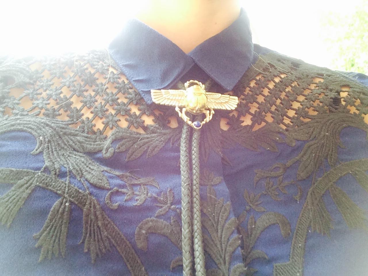 Tuve la oportunidad de ir a la presentación de su nueva colección «The Hanwi» inspirada en Sioux, la Diosa de la Luna y estuve tentada a comprar el body chain de luna y el choker de estrellas pero cuando me tope con el Scarabaeus Bolo de su colección pasada «The Gilded Nile» inspirada en la cultura egipcia y sus elementos místicos, simplemente perdí, tenía que ser mio; y es que como dice Mich, sus piezas van mas allá de la atracción visual convirtiéndose en un vinculo emocional. Los escarabajos me encantan y tengo una obsesión por los Bolo Tie, con este, ya soy la afortunada poseedora de mi segundo Bolo de Avocet el cual amo y uso muy seguido porque según yo me da un estilo clásico pero original. Sin duda un statement para el piece of the week.