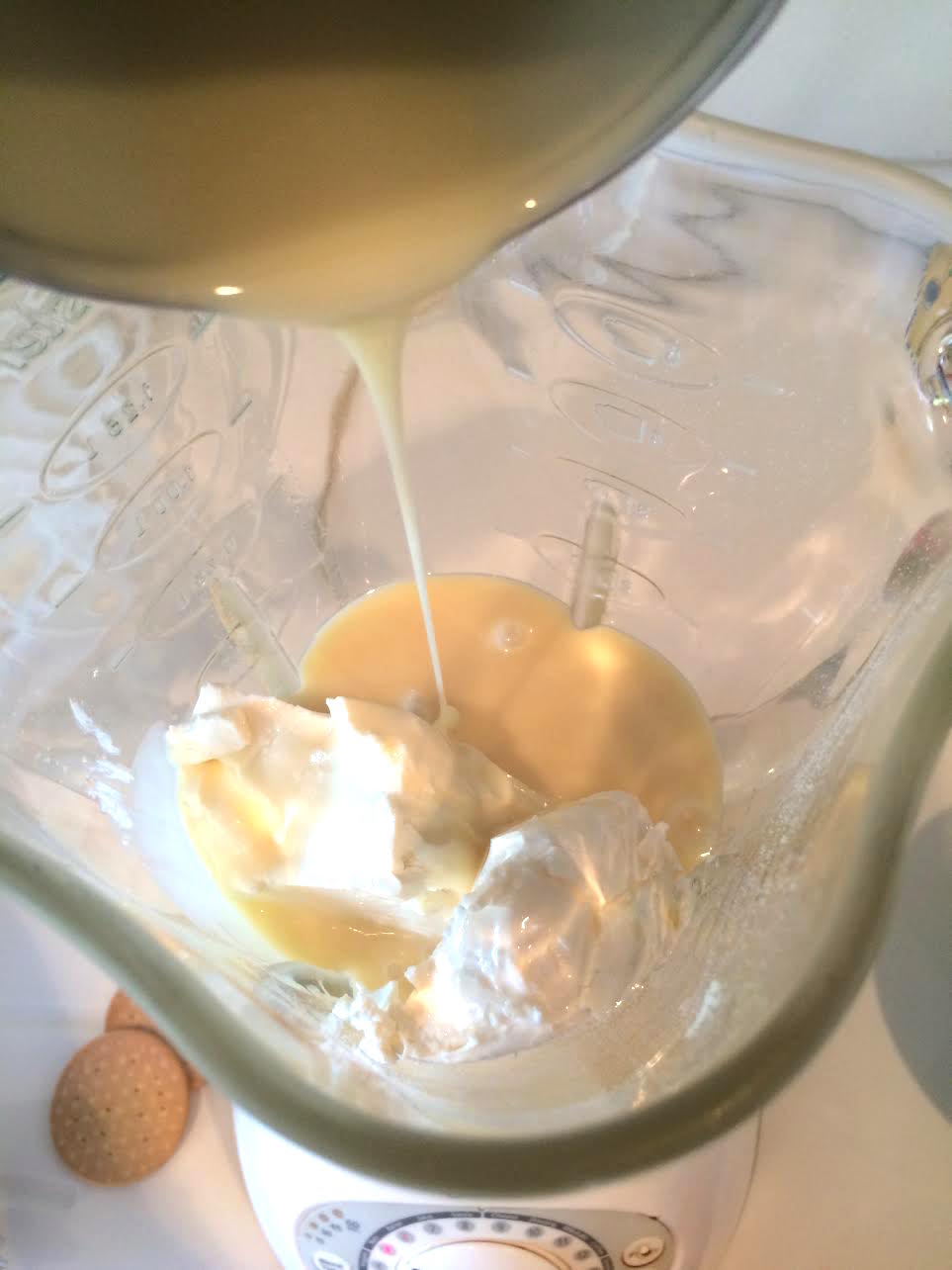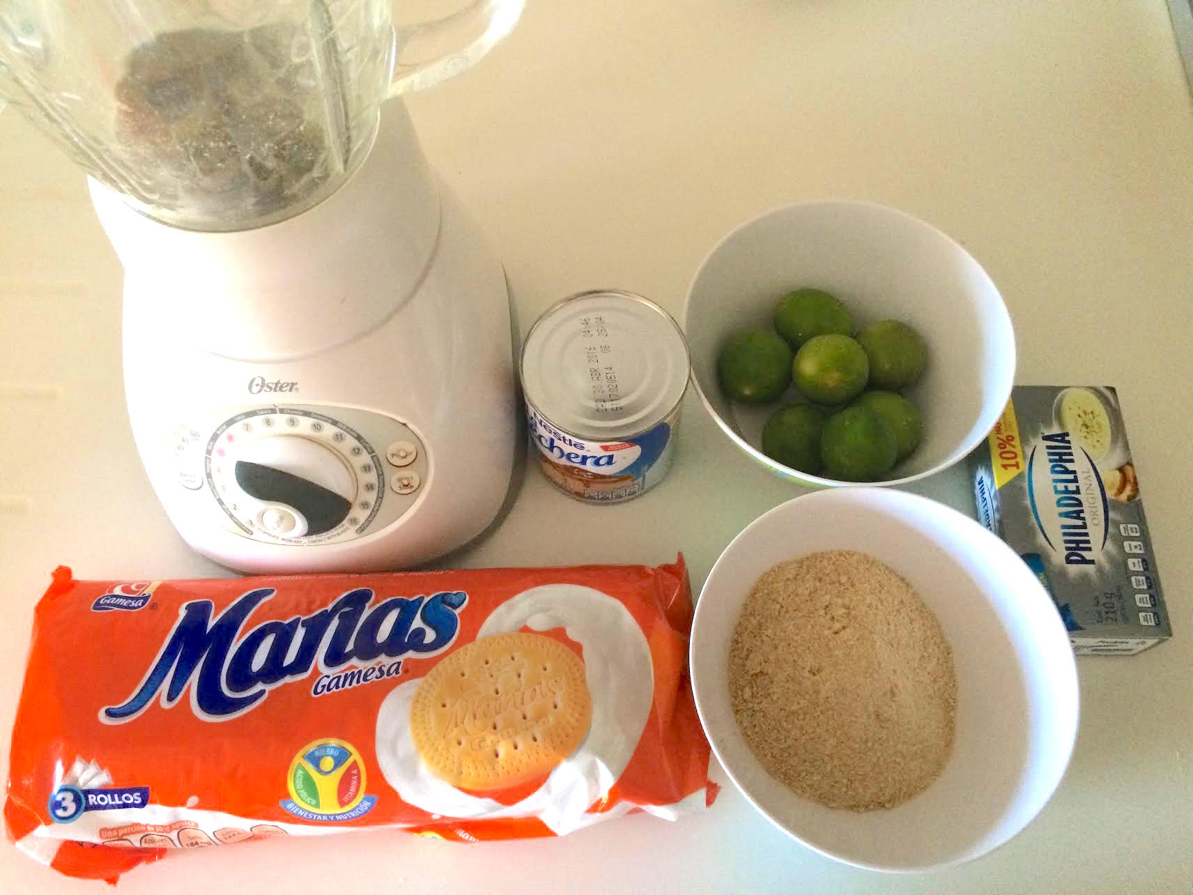 Preparación: En una licuadora triturar la mitad de un paquete de galletas Marías y reservar. Poner a licuar el queso crema, la leche condensada y el jugo de los limones, a más limones, más agrio, depende el gusto, yo le echo como 6.
