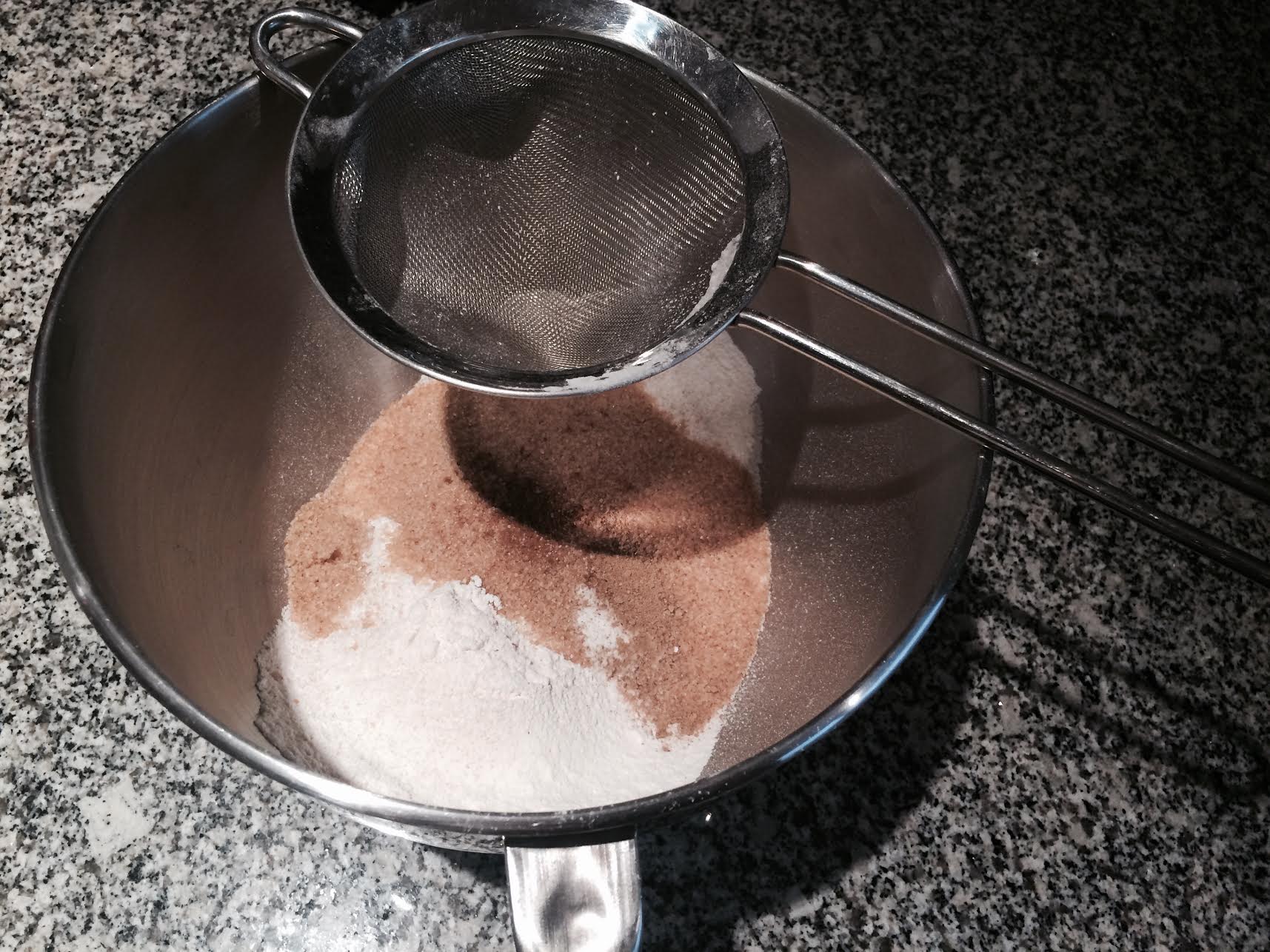 Preparación: En un bol mezcla la harina tamizada, el azúcar moreno, el bicarbonato, la canela, el jengibre y una pizca de sal.