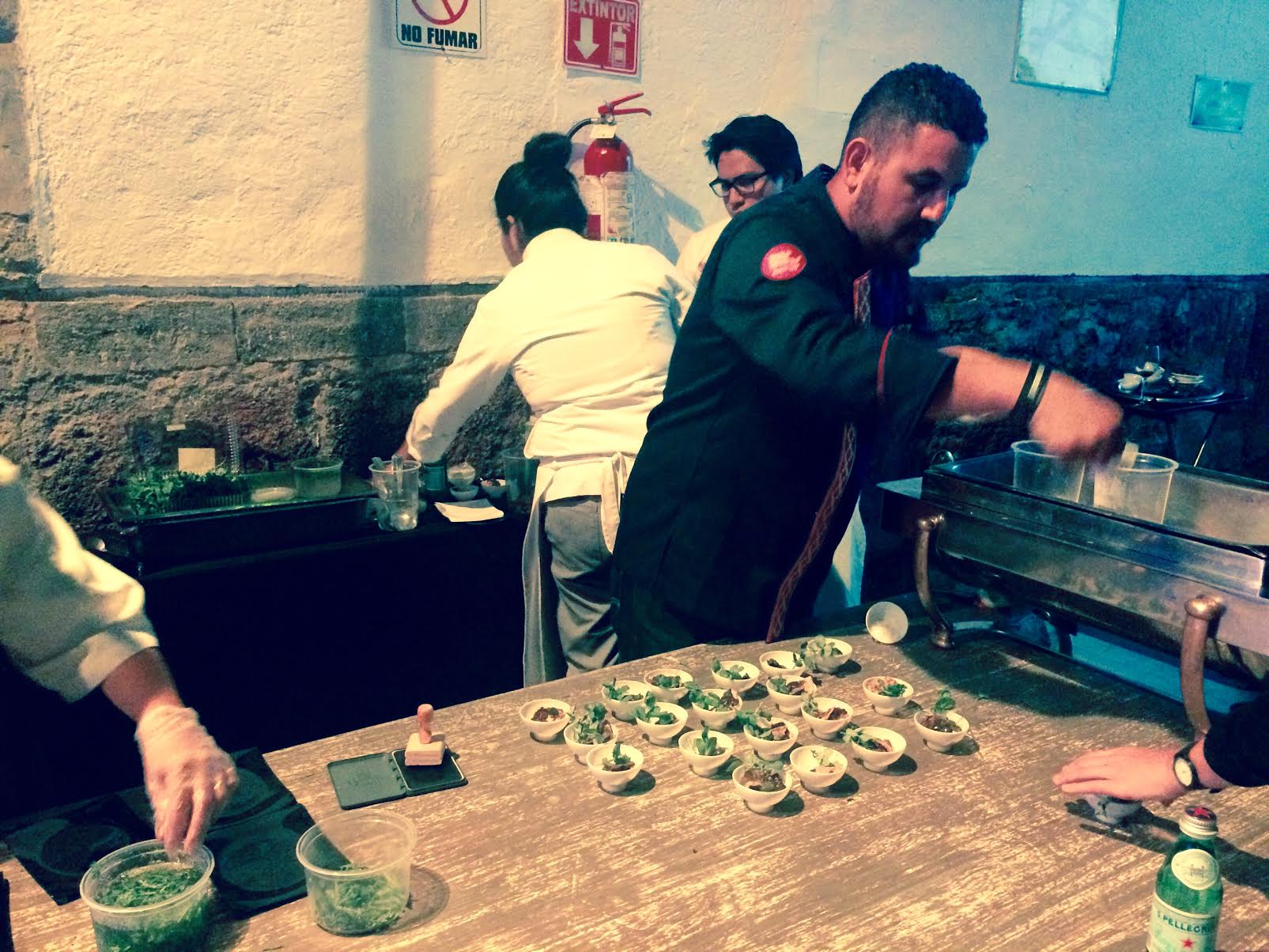 Por 4 días México se vistió de gala para recibir a los mejores chefs y sommeliers ya que además de ser la primera vez que la lista de los Latin America’s 50 Best Restaurants 2015 de San Pellegrino se celebran en nuestra ciudad, también Wine & Food Festival conto con grandes eventos para celebrar a la gastronomía como cada año sabe hacerlo. La cita fue en el maravilloso Ex Convento de San Hipólito convertido por una noche en una kermés con un recorrido culinario de 42 platillos, 11 bodegas de vino, cerveza, mezcal y música de la mano de 21 chefs llamado Chefs Estrella de México. Era una tarea difícil pero alguien tenia que hacerla así que como invitados de Nespresso, Galia Katz, Rodrigo Dávila y yo, tratamos de romper el record de ver quien podía comer más y déjenme decirles que creo que gane yo