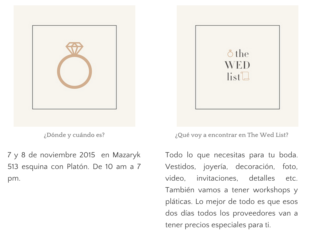 Invito a las futuras novias que como yo escucharon esa vocecita necia diciéndoles que deberían ir de otro color a que por lo menos se prueben vestidos diferentes y se hagan caso a la hora de decidir. Con The Wed List tendrán la opción de ser diferentes si así lo quieren. No se pierdan la feria para novias este 7 y 8 de Noviembre.